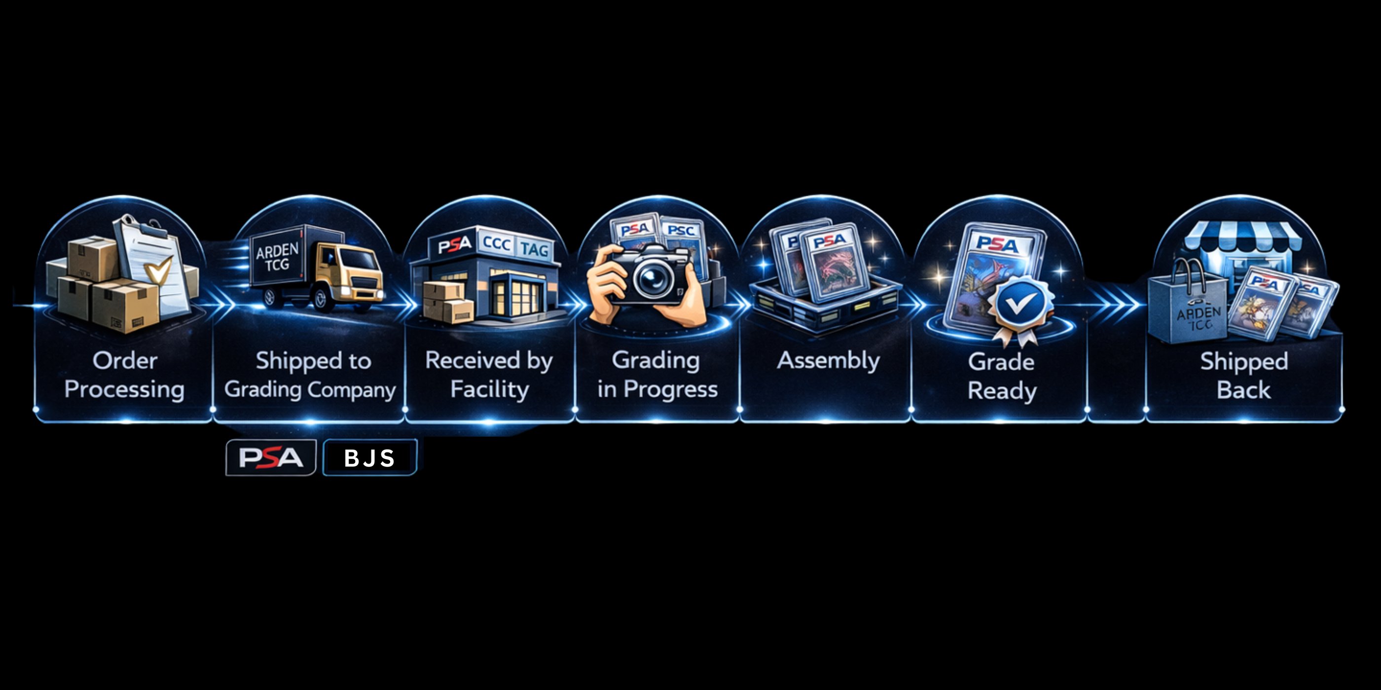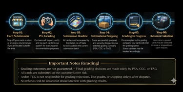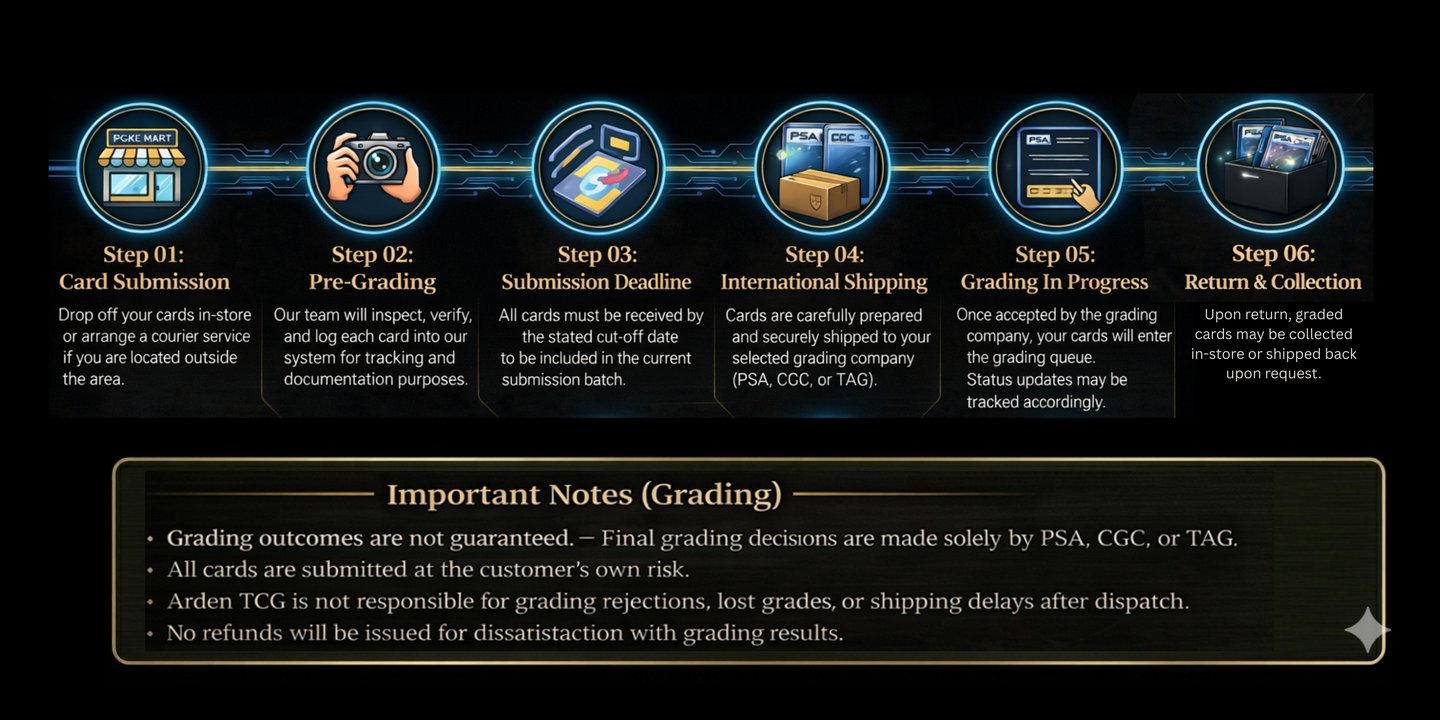 Grading your cards through Arden TCG is secure, simple, and fully managed by our team — from submission to return. We ensure every card is carefully handled and sent to trusted grading authorities like PSA and BGS