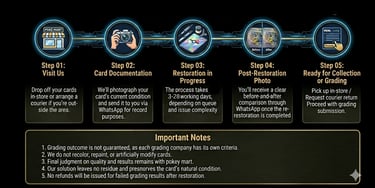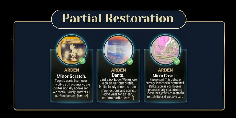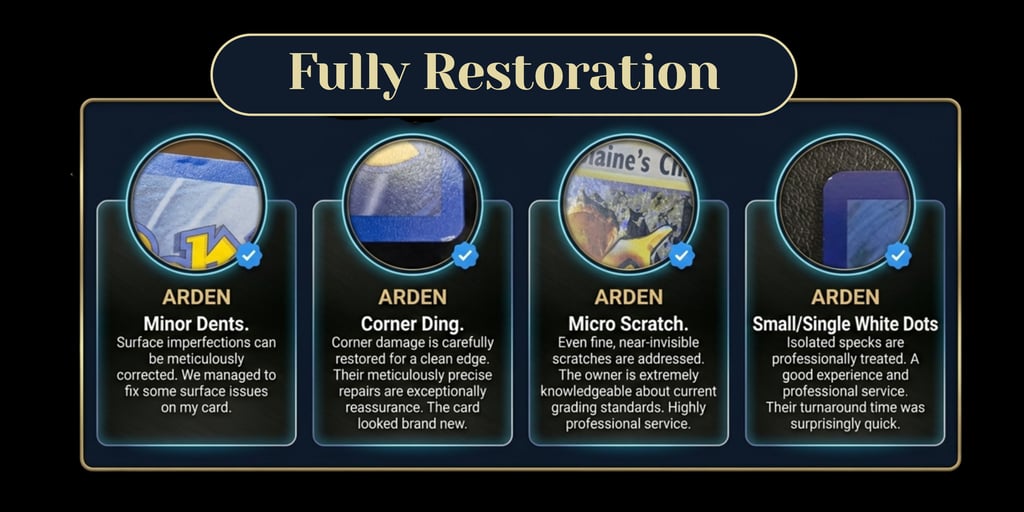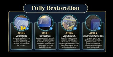 Each card is assessed individually, and all restoration fees are final once invoiced. Refunds will not be issued after service completion unless an internal operational error has occurred, as determined solely by Arden TCG.
