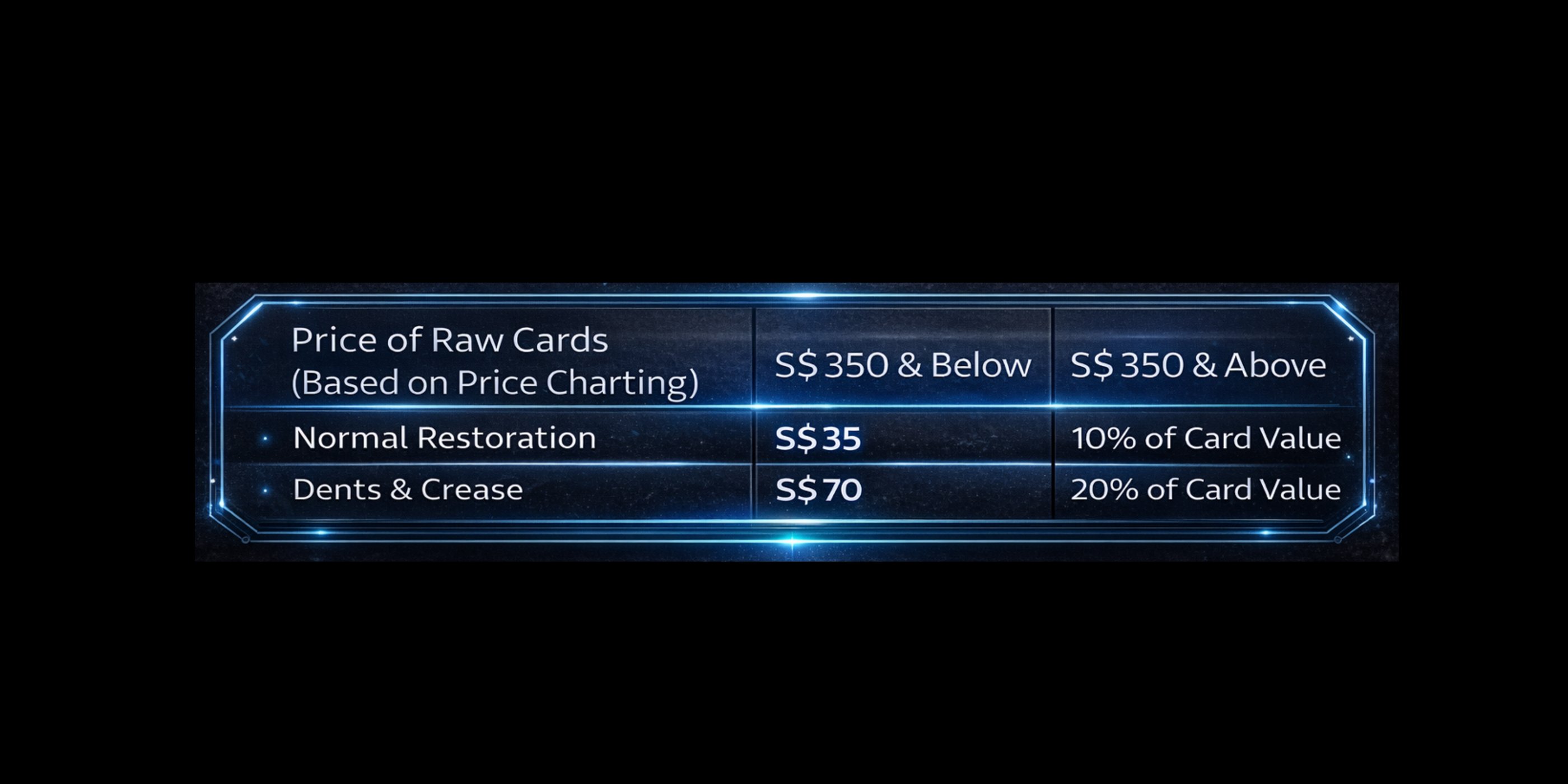 We do not guarantee flawless restoration. Results will vary based on the card’s original condition.